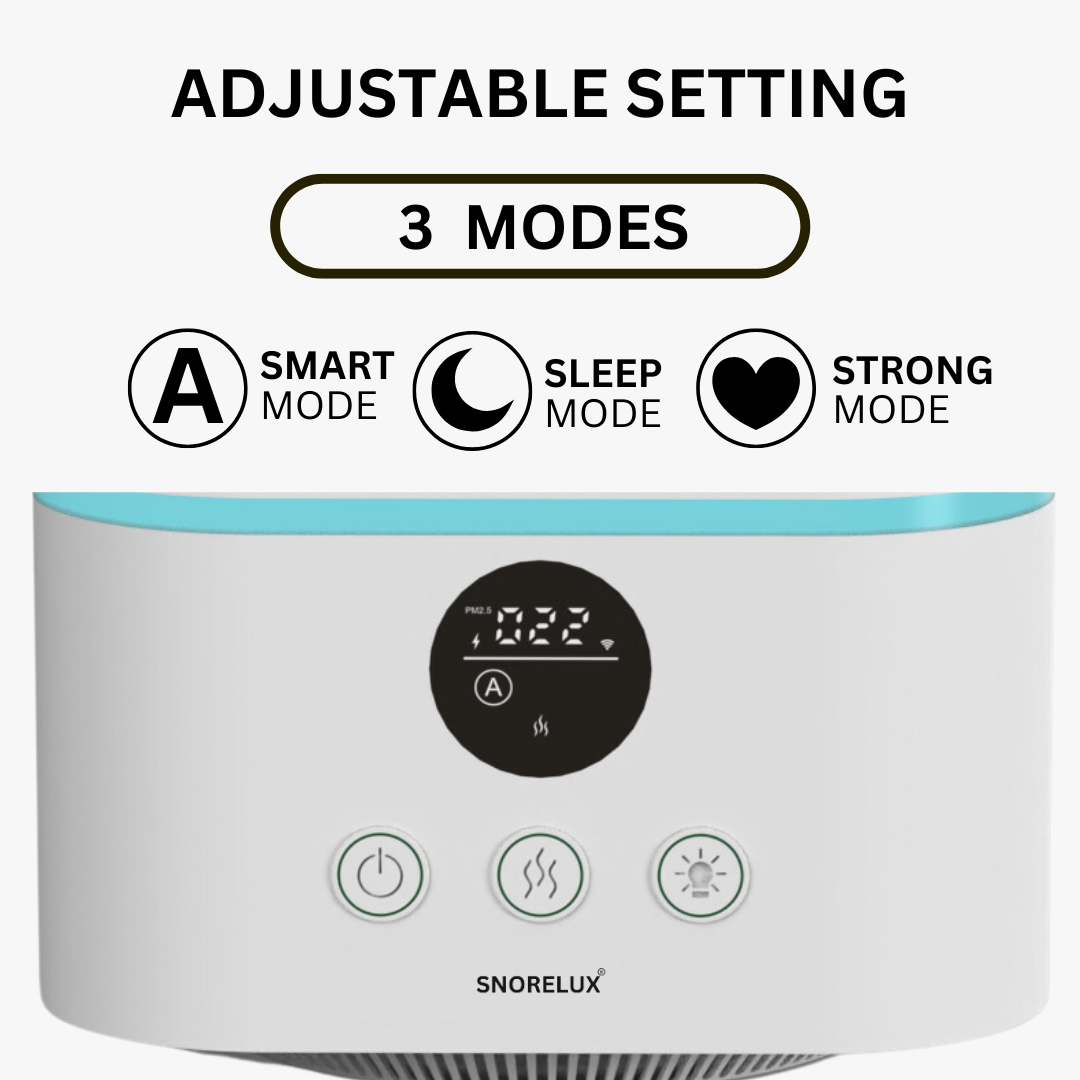 Slechte luchtkwaliteit kan leiden tot verstopping, droge keel en irritatie van de luchtwegen, waardoor snurken erger wordt en uw slaap verstoord wordt. De Snorelux 2.0 houdt uw lucht fris en schoon, zodat u moeiteloos kunt ademen, minder snurkt en wakker wordt met een uitgerust gevoel.