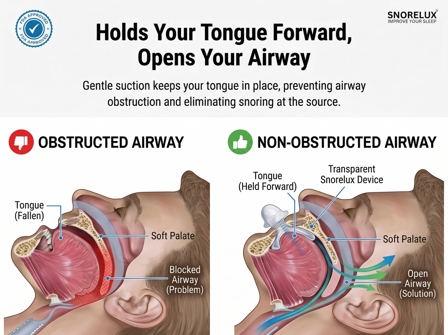 Stops Snoring at the Source – Keeps Your Airway Open