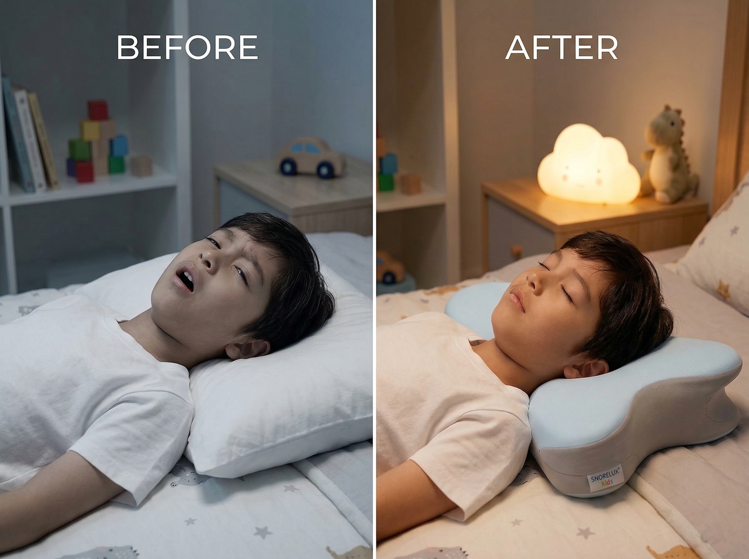 Hoewel het geen medische behandeling is, kan het Snorelux®-kussen verlichting bieden voor kinderen met licht snurken of verstoorde ademhalingspatronen veroorzaakt door houding. Het ondersteunt een betere hoofdhoek die luchtwegblokkering kan verminderen, wat vaak een factor is bij milde slaapgerelateerde ademhalingsstoornissen.
